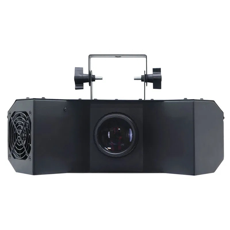 Powered by a mega bright 100W LED the Equinox Helix Gobo Flower produces showers of moving gobos that can be projected on to walls and dance floors. Rich, saturated colours and carefully selected gobos including hearts and snowflakes make this fixture ideal for many occasions and events. Clever programming not only allows users to remove some of the gobos from the stand alone and sound active programs, it also allows for some single gobos to be selected and then have specific colours from the colour wheel added whilst being activated automatically or via sound. The unit, although compact in size, has a wide beam angle but still packs a punch over a long distance thanks to its superior optics and high output LED.